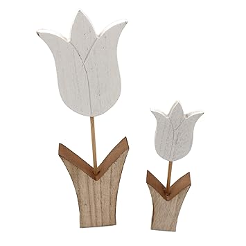 Amazon De Hendriks 2er Set Holz Blume 30cm Beige Weiss Tulpe