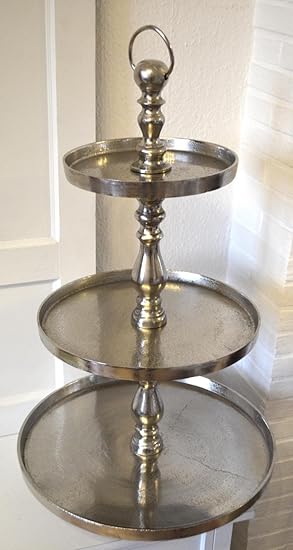 Etagere Kate Xl 125 Cm Rund Deko In Silber Metall 3 Runde Etagen