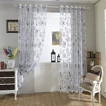 Amazon De Zalago Schlaufenschal Fenster Stoffdruck Blumen Gardine