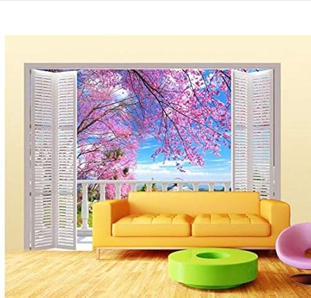 Weaeo Fototapete 3d Gefalschte Fenster Romantische Kirsche
