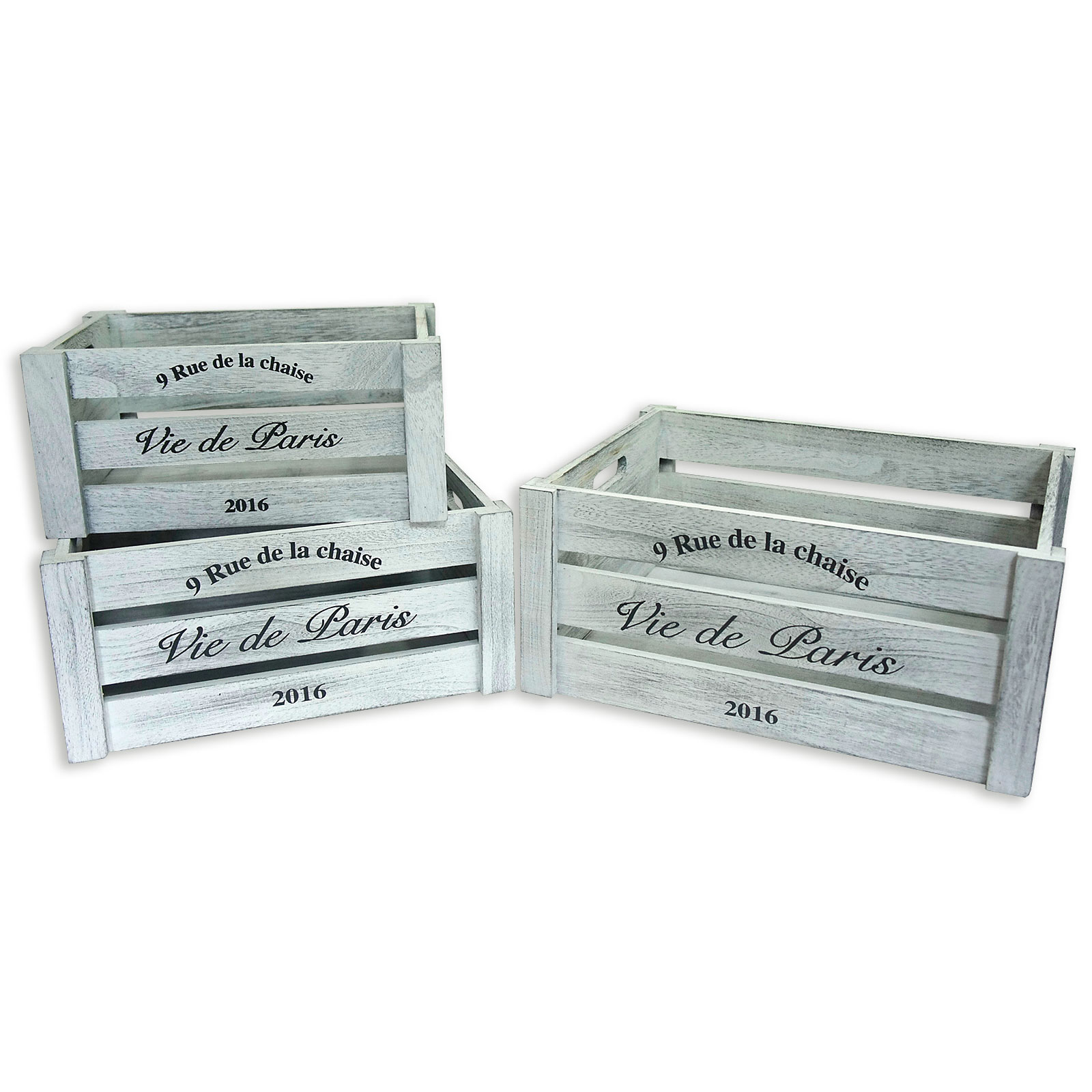 3x Set Weisse Weinkiste Obstkiste Apfelkiste Holzkiste Dekoration