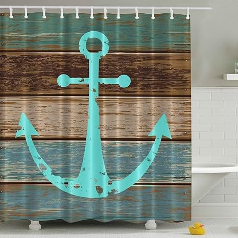 Wasserdicht Maritim Anker Rustikal Holz Polyester Duschvorhang 180