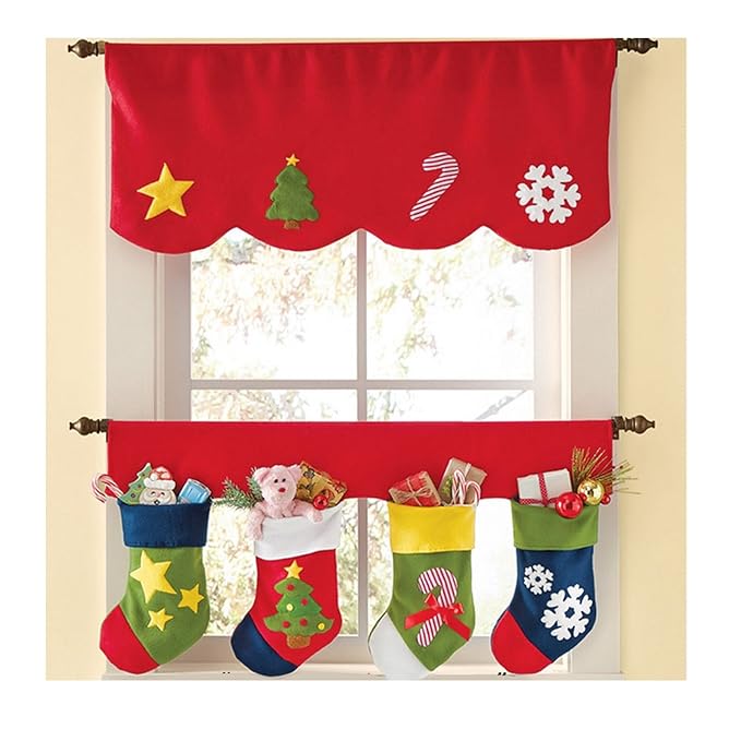 Zoylink Weihnachtsvorhang Weihnachtsstrumpfe Rot Fenster