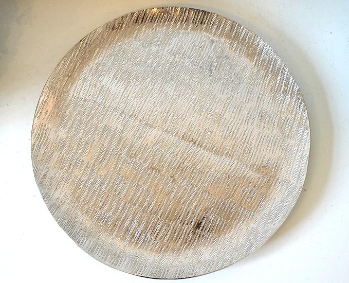 Deko Teller Tablett Kerzentablett Aluminium Gehammert Rund Silber