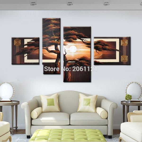 Grosshandel Handgemalte 4 Stuck Wandbild Baum Landschaft Schwarz