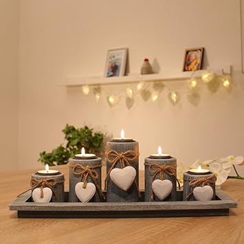 Amazon De Dszapaci Teelichthalter Set Auf Holz Tablett